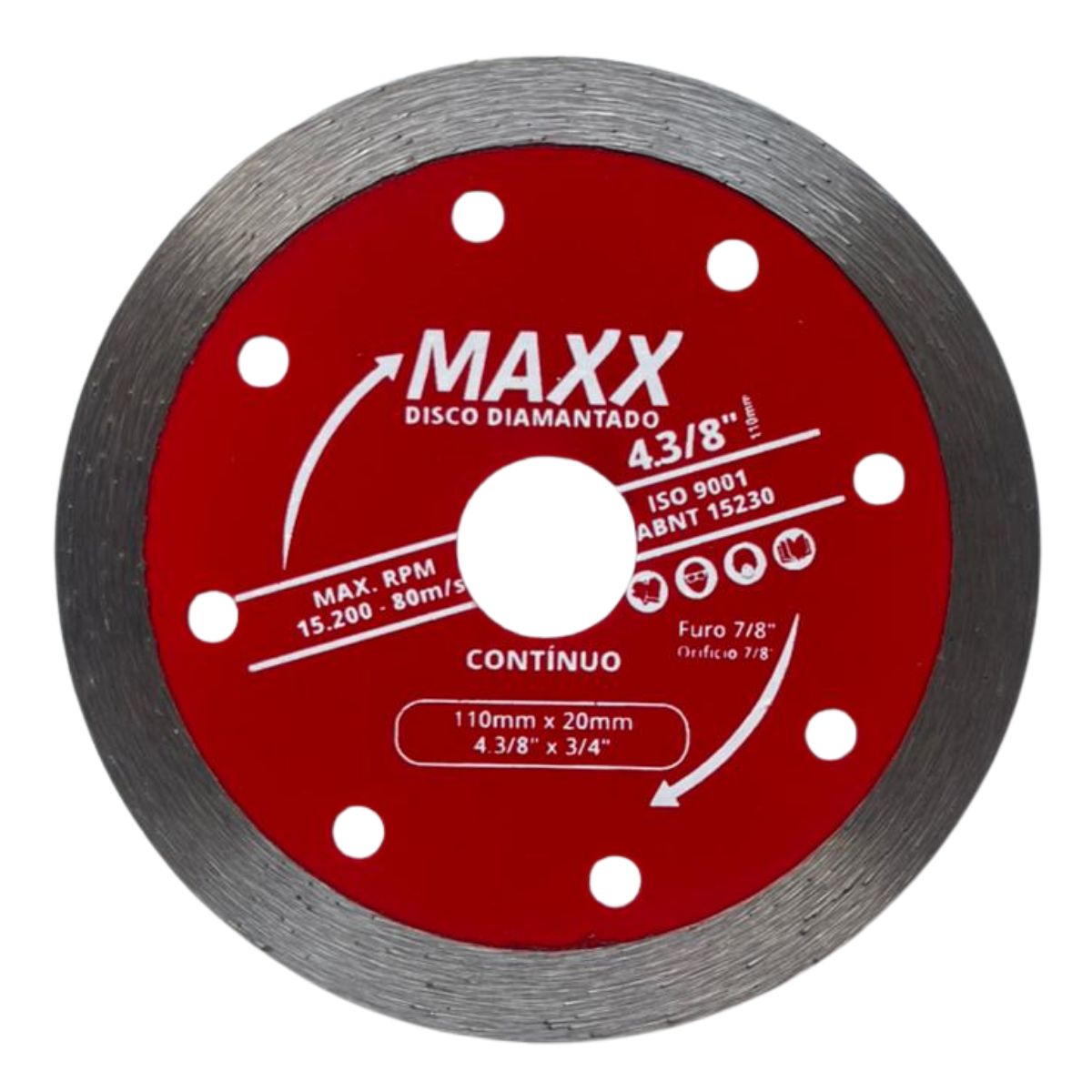 Disco diamantado contínuo da marca Maxx, foi desenvolvido para garantir maior durabilidade e eficiência em cortes de materiais de alta dureza. Corte com precisão e alta qualidade.
